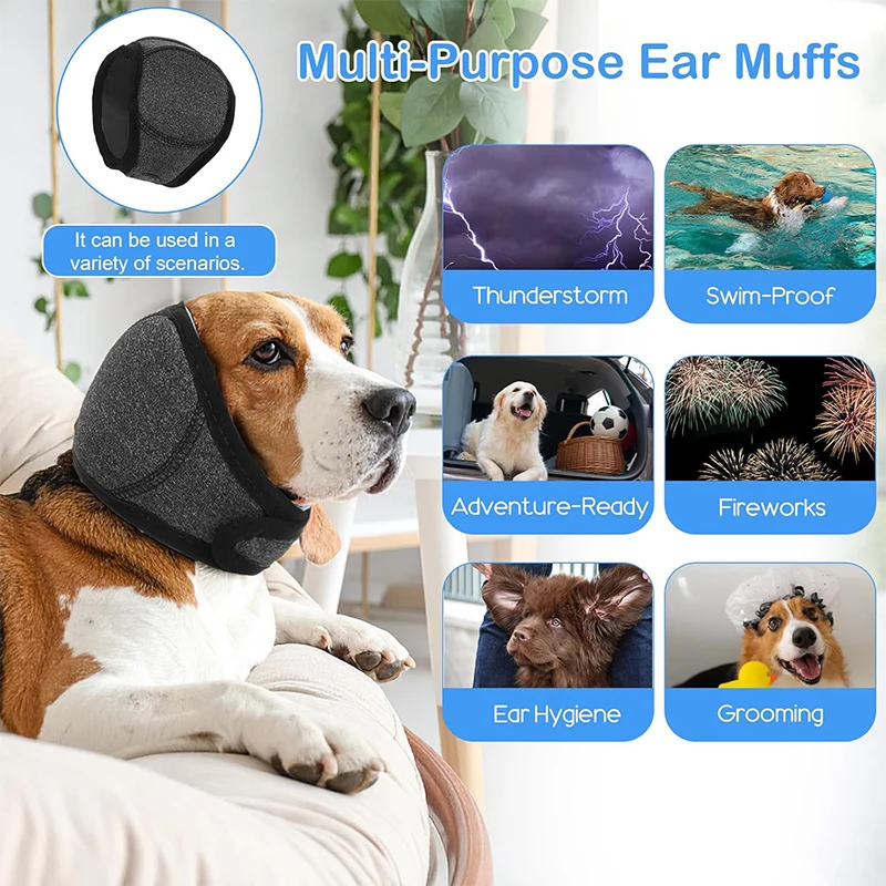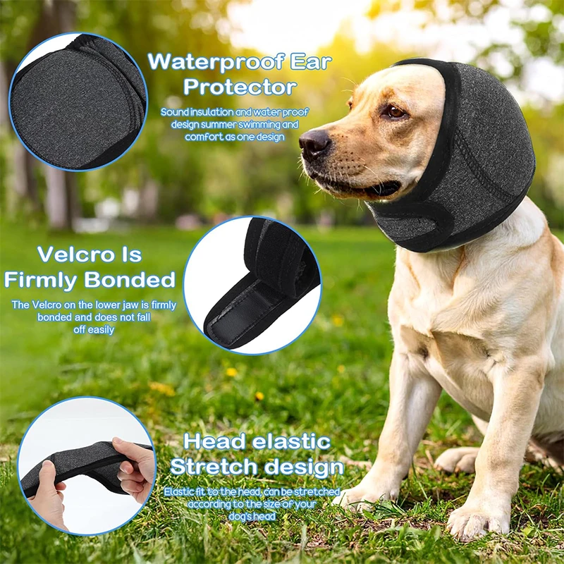 Waterproof Noise Cancelling Dog Ear Muffs for Swimming, Grooming, and Anxiety Relief - Calming Hood To Prevent Shock and Fear